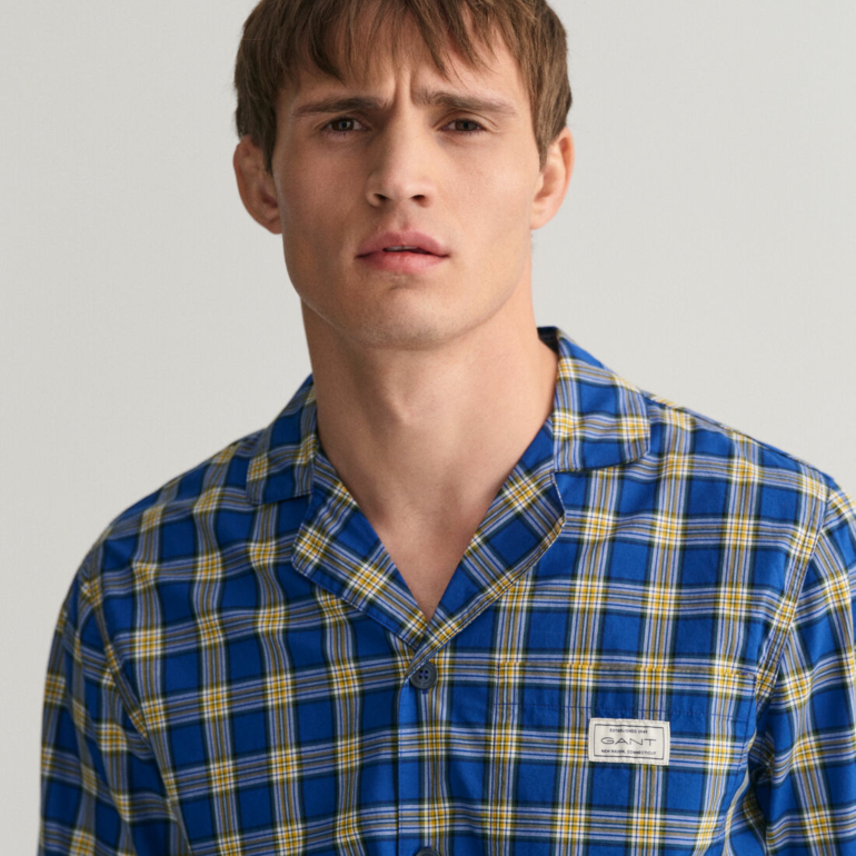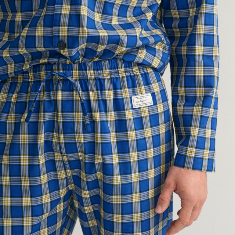 Confectionné en popeline de coton lavé pour un toucher doux, l’ensemble pyjama à carreaux comprend une chemise à manches longues boutonnée sur le devant et un pantalon doté de poches latérales et d’un cordon de serrage. Les deux pièces sont ornées d’un motif à carreaux saisonnier et ornées d’une étiquette GANT tissée.